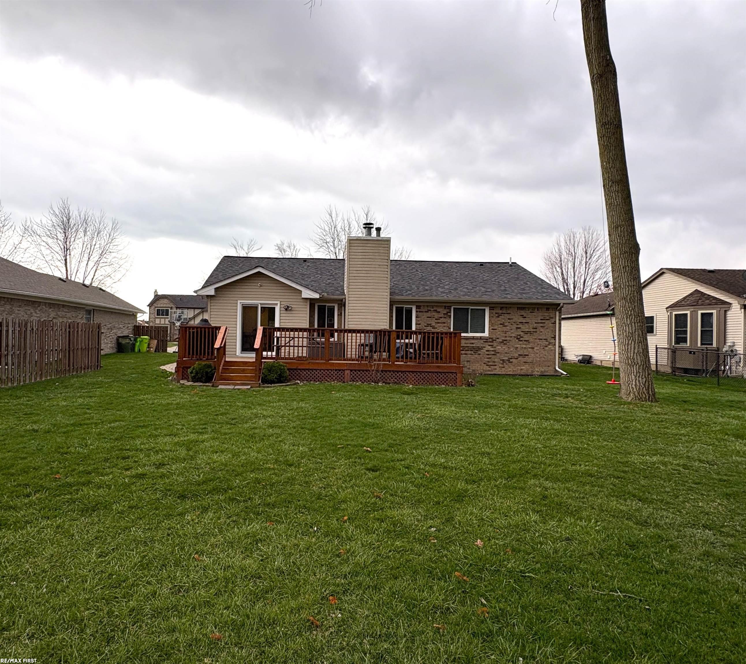 Don't miss out on this well maintained Chesterfield Township brick ranch with no neighbors behind! Updates include: Roof, furnace, HWH & sump pump (2024), A/C (2020), new carpet in basement (2025), newer vinyl windows, fixtures, laminate wood flooring, and storm door. Updated spacious kitchen with Quartz countertops, White Shaker Cabinets & Stainless Steel appliances, Great Room with vaulted ceiling & natural fireplace, Breakfast Nook with doorwall leads to Trex deck overlooking the large yard and private woods behind, 3 bedrooms, 2 full baths with ceramic tile, primary bedroom with walk-in closet, first floor laundry, finished basement provides for extra entertaining space. Great location close to schools, shopping, restaurants and freeways for easy commute!