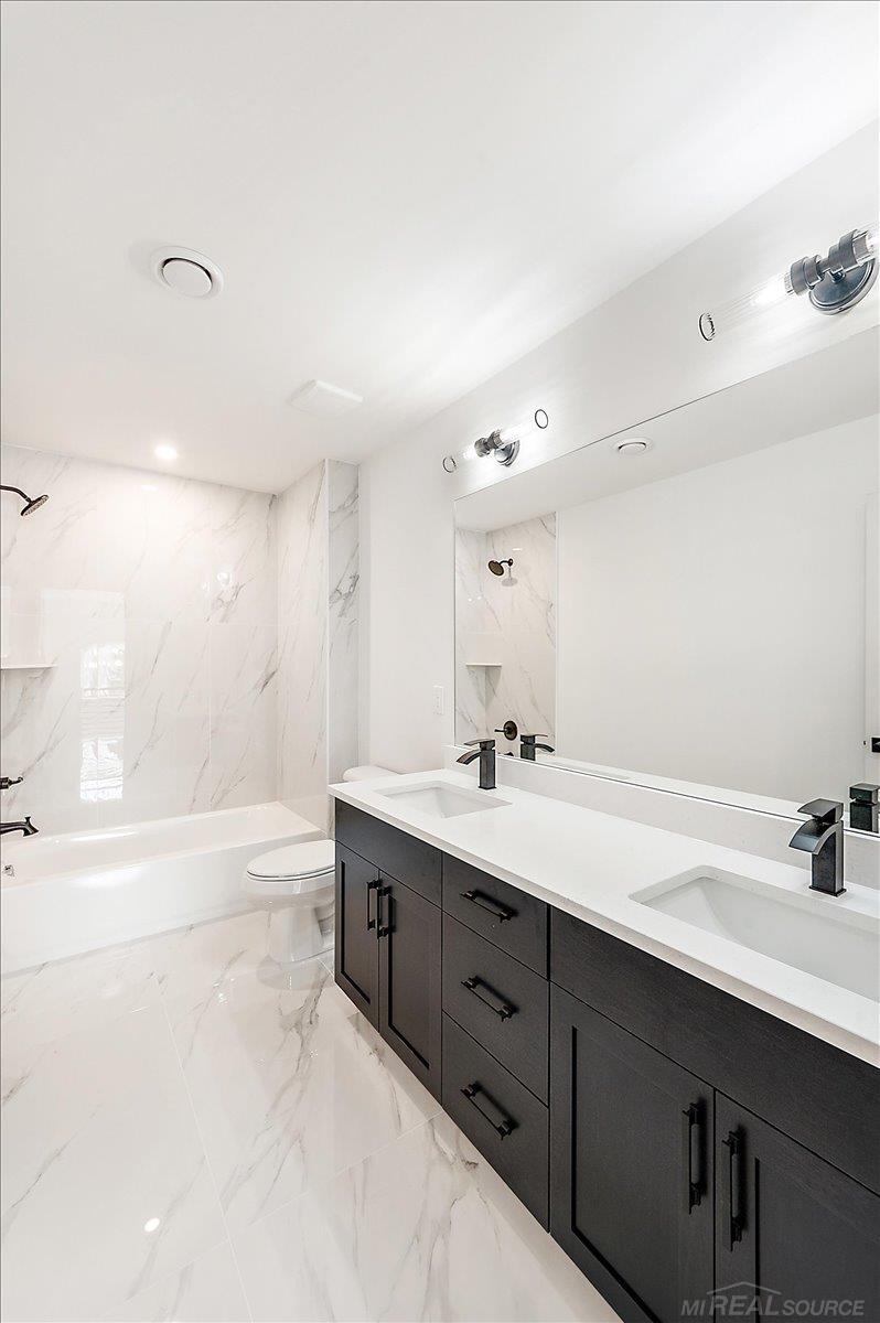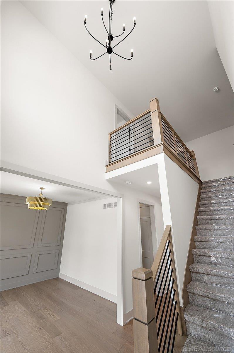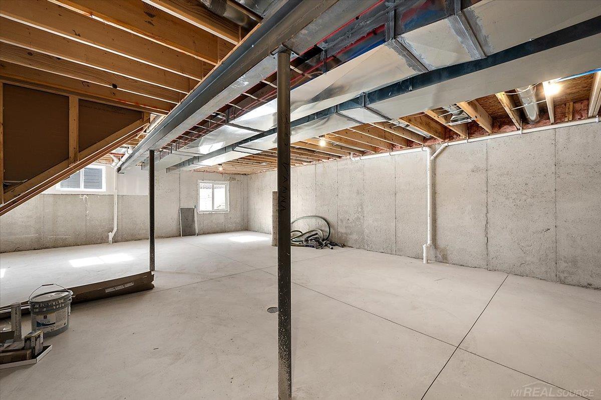Immediate Occupancy – Stunning New Construction Colonial in the Heart of Shelby Township! Located on a private cul-de-sac in the highly sought-after Utica Community Schools district, this beautifully designed home sits on just under a ½ acre private parcel surrounded by mature trees, offering a serene backyard setting — with no HOA and no associated subdivision restrictions. This striking brick and stone elevation is complemented by oversized black exterior/white interior maintenance-free vinyl windows and modern black garage doors with tinted glass. The impressive 4-car tandem garage includes openers, and a spacious 20’ x 12’ covered rear loggia provides the perfect space for outdoor entertaining. Inside, you’ll find an exceptional open-concept layout designed for today’s lifestyle. The entertainer’s kitchen features custom LaFata cabinetry, a built-in hood fan box, quartz countertops throughout, a huge walk-in pantry, and flows seamlessly into the expansive living room highlighted by a modern linear fireplace with porcelain tile extending to the ceiling. Engineered wood flooring runs throughout the entire first floor. Offering 4 bedrooms, 3.5 baths, and a dedicated den/office, this home combines luxury with functionality. The mudroom showcases a custom built-in bench, while decorative trim accent walls, modern stair rails with horizontal iron spindles, designer lighting and plumbing fixtures, and backlit mirrors in the powder room and primary bath add distinctive, high-end finishes throughout. The 8’10†basement with daylight windows is prepped for a future full bath, providing excellent potential for additional finished living space. Exterior rendering shown with front landscaping (landscaping not included). Some exterior items to be completed as weather permits. Move right in and enjoy brand new construction without the wait — and the freedom of owning a private parcel with no HOA!